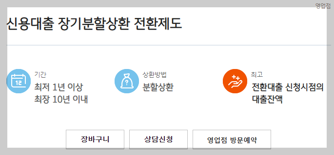 신용대출 장기분할상환 전환제도 대출금리 및 상환수수료